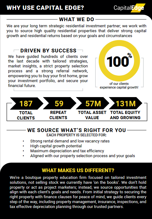 Capital Edge have worked with some of the biggest private investors around Australia, and we’re committed to helping find the right residential property for your needs and investment capabilities.